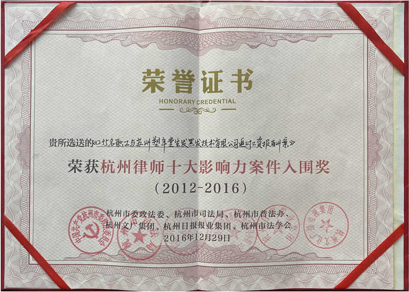 2012-2016杭州律师十大影响力...