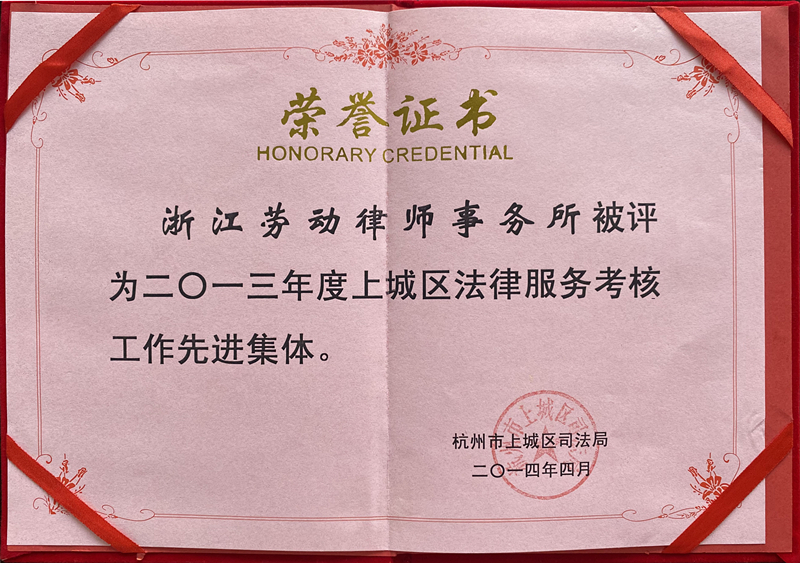 2013年上城区法律服务考核工作先进...